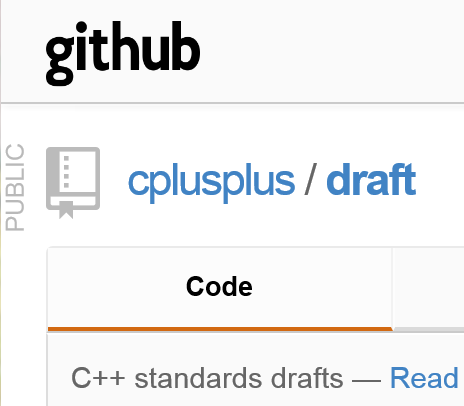 开发中的 LaTeX 源代码材料在 GitHub 上维护。查看仓库以获取当前快照。请注意,这不对应于任何已发布标准的最终文本,但它可以作为一般的非官方参考,用于回答关于 C++ 的基本问题。